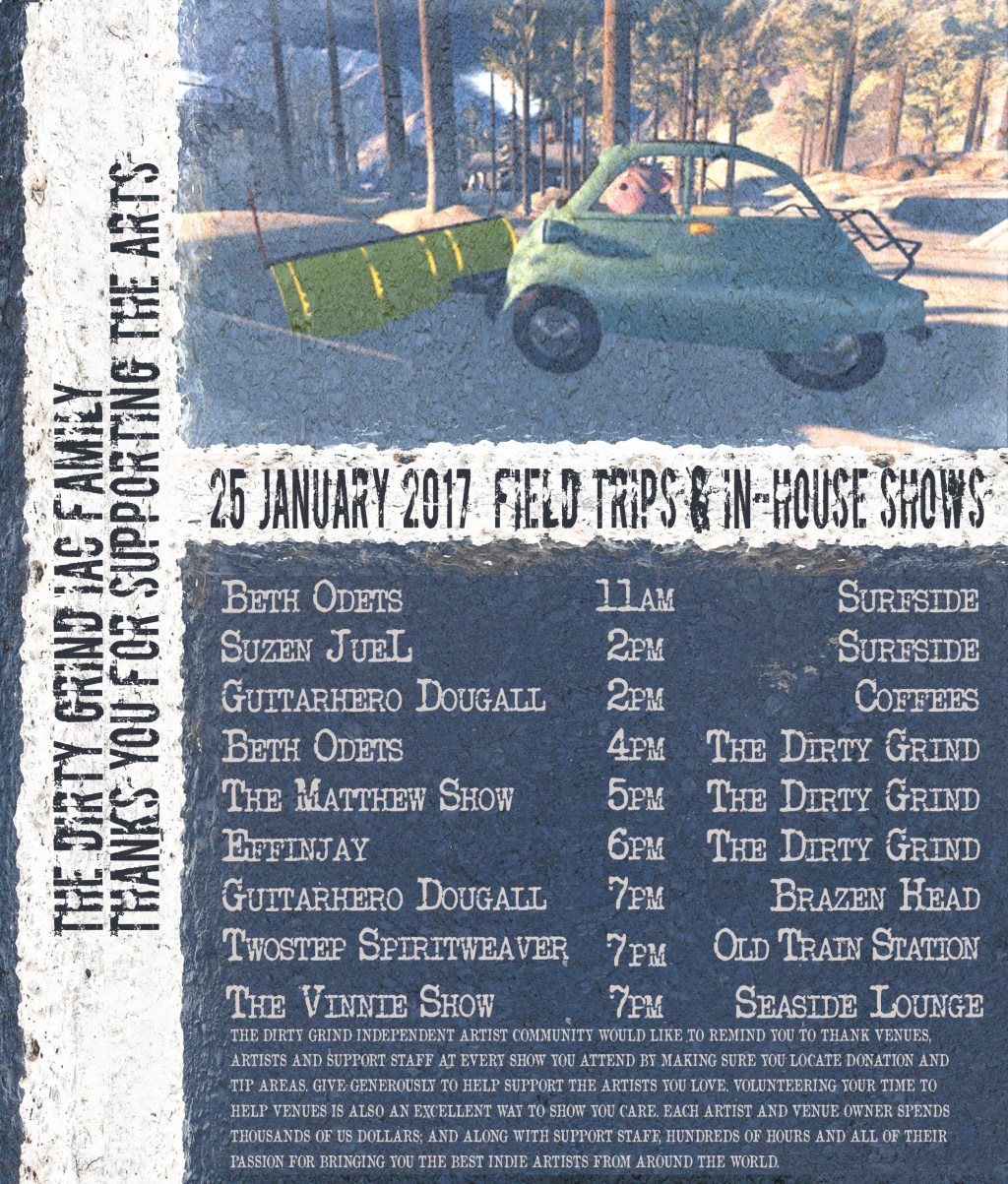 Happy Thursday everyone! Sorry for the short introductions lately, Murphy is squatting at my folks’ house and is wreaking havoc on everybody’s schedule. This said, here are today’s eclectic in-house shows and plenty of juicy field trips to sink your teeth in – go forth and help yourself to generous servings of live music!