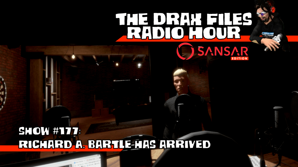 a legendary game designer has visited the sansar basement. richard a. bartle and drax spent an hour [much too short!] debating text vs. graphical interfaces, history vs. future and drax learned that this master of text actually enjoyed the ready player one movie version…