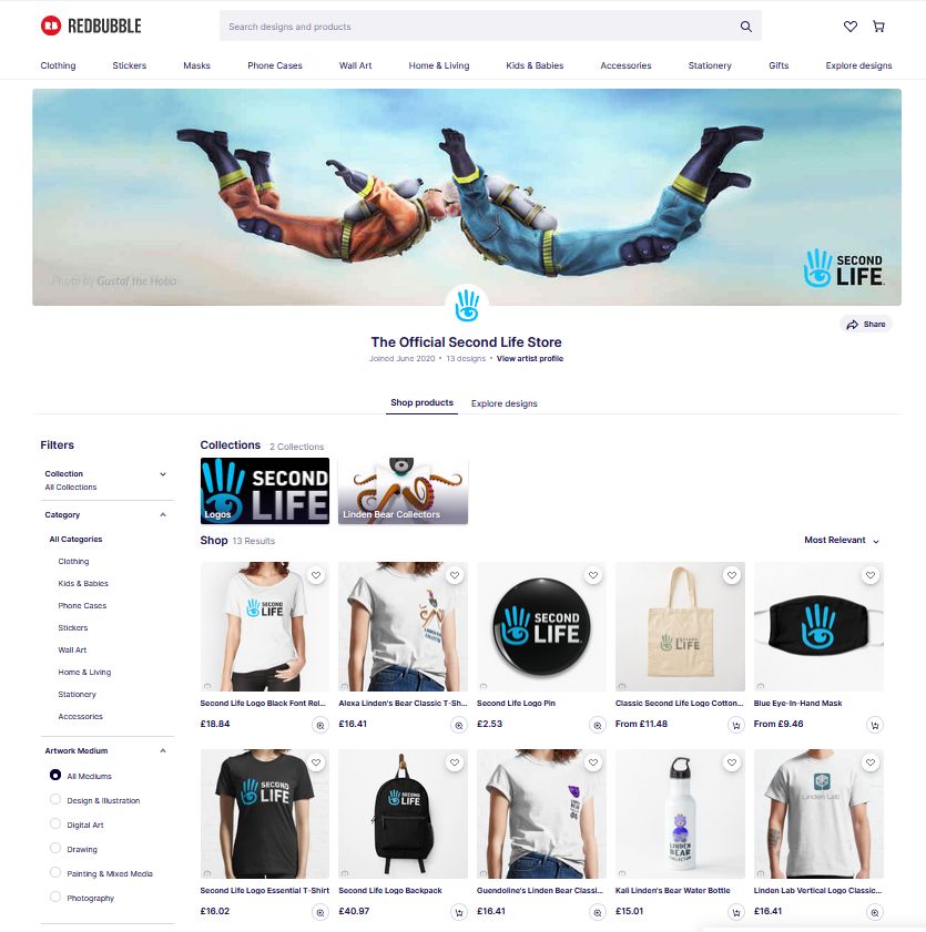 As with most virtual market stores, the RedBubble Second Life Merchandise Store feature a list of categories down the left side of the page (note: these are a part of the site design, and not all of them may apply specifically to Second Life / Linden Lab). The main part of the site is then devoted…