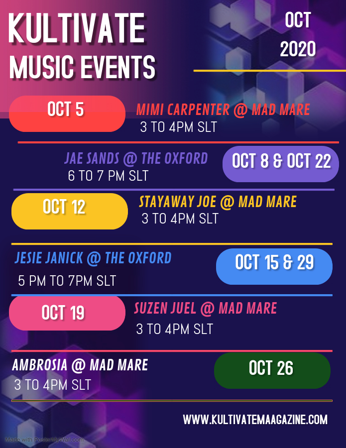 Join Kultivate throughout the month of October for live music and fun! Below is our live music schedule this month and we hope you can make some of the events!