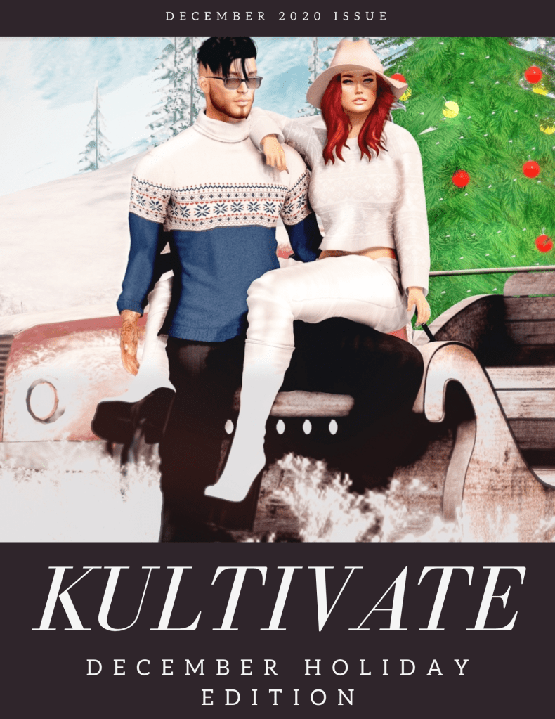 The December Holiday Edition of Kultivate Magazine is now available! This issue features over 40 images by some of the most talented photographers and artists in Second Life, The Janus Art Gallery, the artist Tresore, 3 photo essays by Tempest Rosca Huntsman, Inara Pey, & Grace Sixpence; the new Linden Labs stilt homes, IMAGO Gallery, The Dickens Project Art Exhibition, Aterna 3D Exhibition, and the Snoweeta Sim! Click the image below to view this months issue!
