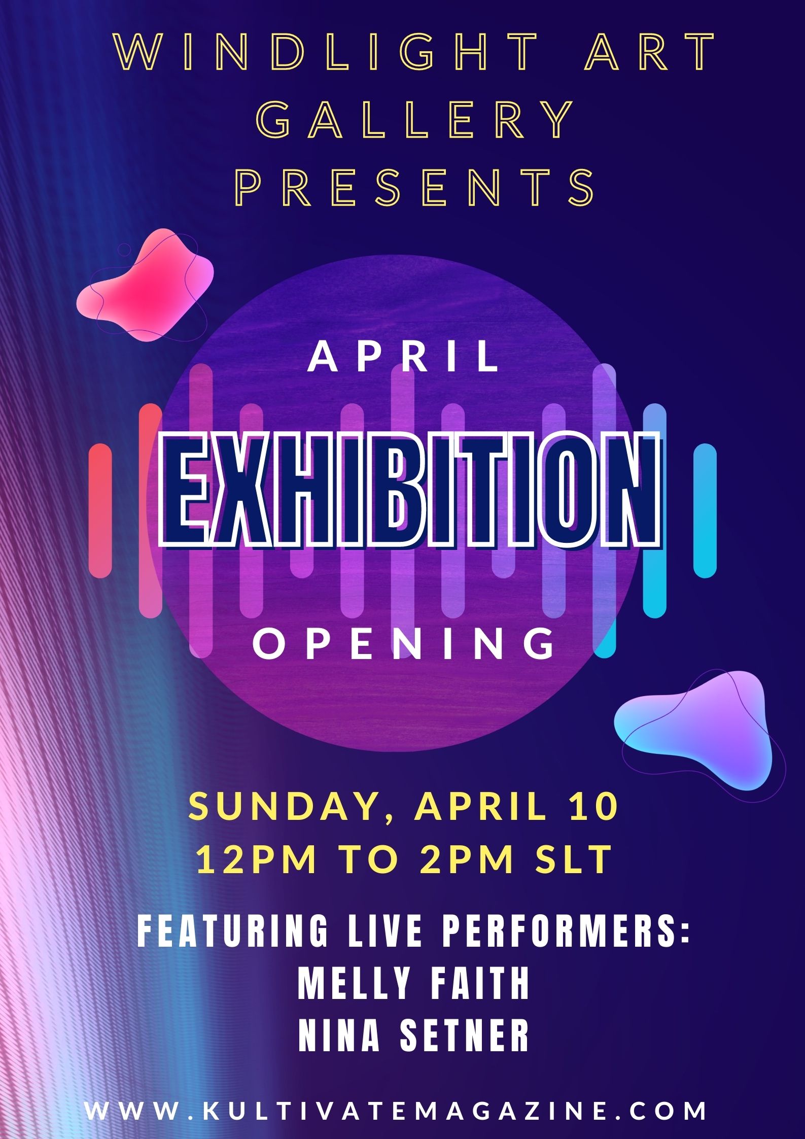 Join us at Windlight Art Gallery from 12 to 2pm slt on Sunday, April 10, 2022, for the grand opening of Windlight Art Gallery’s April Exhibition! The event will feature live performers Melly Faith and Nina Setner!